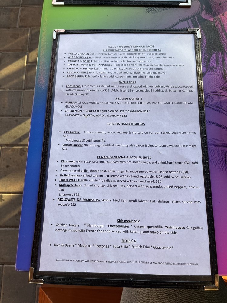 For hearty main courses, indulge in their Ultimate Fajitas, featuring succulent chicken, steak, and shrimp served sizzling with peppers and onions. The Catrina Burger is a must-try, boasting two juicy patties layered with bacon and chipotle mayo, perfect for burger enthusiasts.